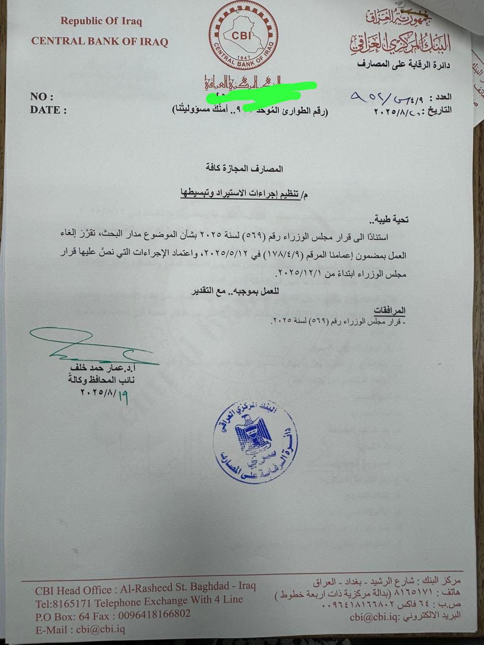 قرار بشان تنظيم اجراءات الاستيراد وتبسيطها